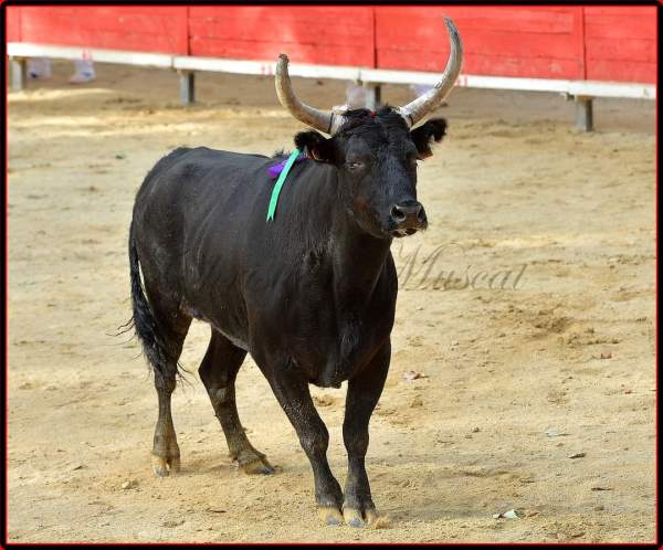 Il entre le premier sur l’immense piste d’Arles. Pas la meilleure place, le sable est brulant malgré l’arrosage, le soleil frappe toute l’arène, les raseteurs sont au meilleur de leur forme. Il terminera la course la langue pendante, ayant tout donné.